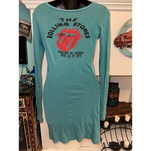 VINTAGE 90's ROLLING STONES TURQUOISE BAND TEE BODYCON DRESS