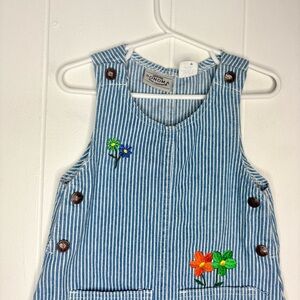 VINTAGE 90’s Railroad Stripe Denim Dress Embroidered Floral Buttons Girl’s 2T