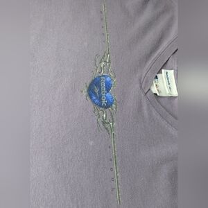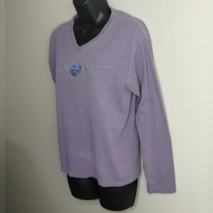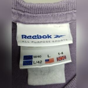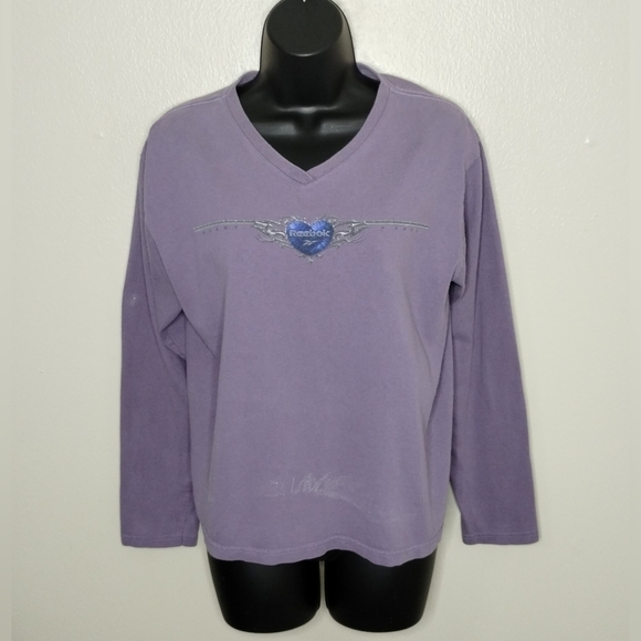 VINTAGE 90s Reebok Women's Large T-shirt V-neck L/S Heart & Soul Lavender Cotton