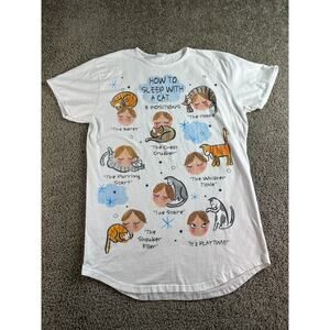 VINTAGE 90s Rel-E-Vant Products Cat Shirt Women OS White AOP Sleep With Cats