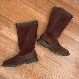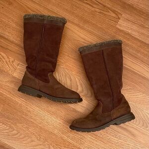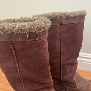 VINTAGE 90s Skechers Faux Fur Lined Brown Leather Tall Boots size 6.5