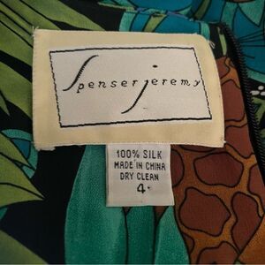 Vintage 90s Spenser Jeremy Silk Dress. Sleeveless dress featuring an allover vibrant jungle print consisting of leaves, giraffes, tigers & butterflies. Rounded square neckline & kick pleat on the front right side. Zipper back closure. Fully lined. In very good preloved condition with minimal normal wear. Size 4. Approximate measurements lying flat: 17.5” from pit to pit & 46.5” from shoulder to hem. Bundle to maximize shipping!