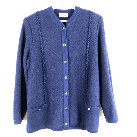 VINTAGE 90s St Georges Sweater Cardigan Blue Mohair Blend Italian Made Sz Large