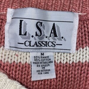 Vintage 90s L.S.A. Classics cotton blend blush pink and cream striped knit sweater with double crew neck collar. Trendy style size medium.