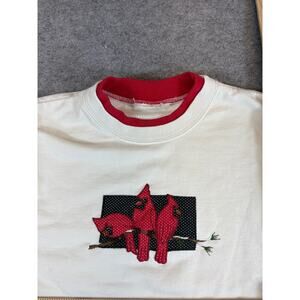 VINTAGE 90s Sweatshirt Womens Large White Embroidered Cardinal Birds Crew Neck