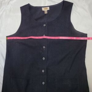 Vtg 1990s Talbots dark academia button up goth pinafore dress. Some minor wear shown in photos. Two front pockets. Please refer to measurements for fit. Polyester spandex.