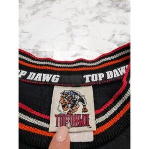 VINTAGE 90s Top Dawg Mens Jersey Sweatshirt Black Red Spell Out Long Sleeve. Some fading and one mark on the sleeve as seen on last picture.