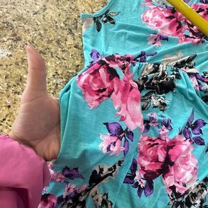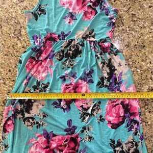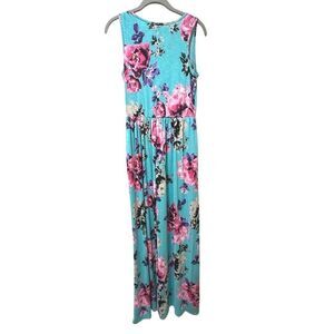 VINTAGE 90's USA Made Sea-foam Green Colorful Floral Sleeveless Maxi Dress with Pockets Size Medium Flirty BOHO Fairy Tropical Summer Cottagecore