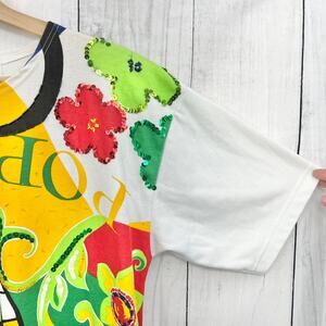 VINTAGE 90's Victoria Harbor MEDIUM White Art to Wear Abstract Beaded Sequin Tee Shirt T-Shirt
