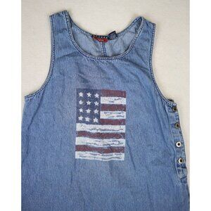 VINTAGE 90s WOMEN'S DENIM MIDI AMERICAN FLAG PRINT JUMPER DRESS - SIZE PM