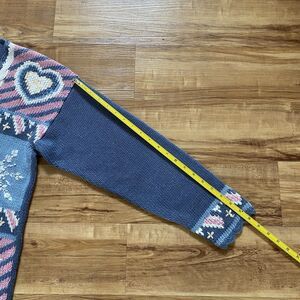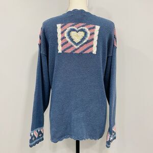 VINTAGE 90s Women M Blue Granny Core Heart Patchwork Knit Sweater Cottagecore Whimsy