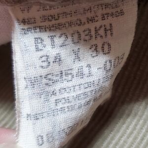 Beige, tan corduroy with a baggy loose fit and tapered leg.