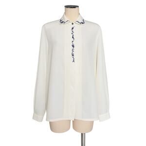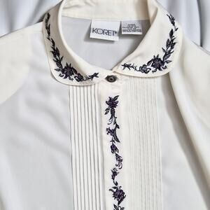 VINTAGE 90's Y2 KORET Embroidered White Peter Pan Collar Blouse Top 14