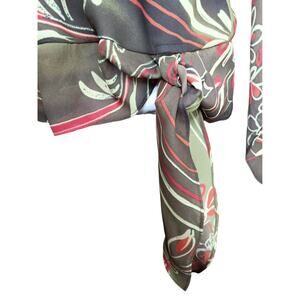VINTAGE 90s Y2K Boho Blouse Top 14W Artsy Floral Green Brown Orange V-Neck
