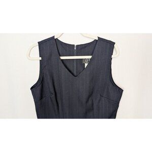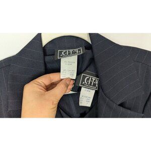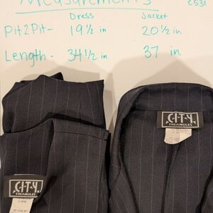 VINTAGE 90s Y2K City Triangles 13 Blazer Jacket Suit Dress Set Navy Pin Stripe
