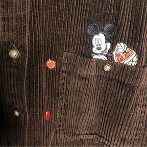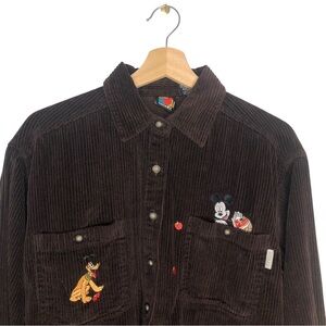 VINTAGE Y2K Mickey Unlimited Brown Corduroy Mickey Pluto Embroidered Apple Picking Autumn Button Down Shirt Shacket Size Medium