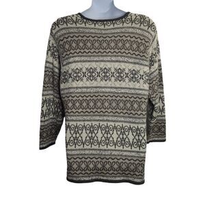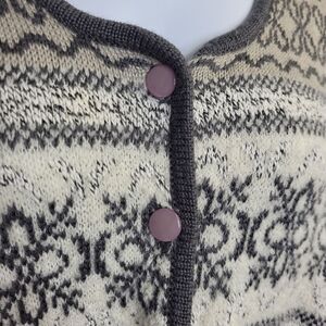 Vtg 1990s Alfred Dunner fair isle grey and white button up cardigan sweater. Small pull shown in photo. Please refer to measurements for fit. Acrylic wool cotton.