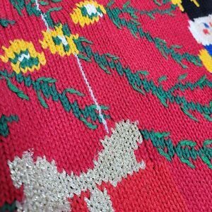 Vtg 1990s Lauren Hansen red Nutcracker Christmas holiday mock neck sweater. Sime minor pulls. Very thick sweater. Ramie, cotton.