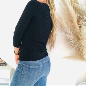 VINTAGE Black Ribbed Silver Keyhole Sweater XS