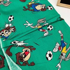 VINTAGE 90’s lot of Fabric 2 yards with Bugs Bunny and Taz playing soccer.