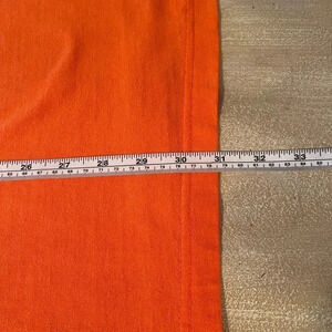 Size tag has faded. There is a discolored area on the back of the shirt. Upper mid/left side. Please see picture. Please use measurements for accurate fitting. I believe this is an XL based on the measurements.