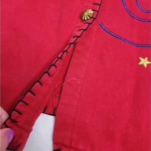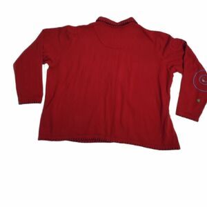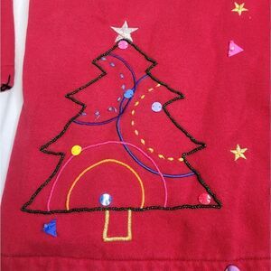Vtg 1990s Karen Scott Sport Woman butyon up holiday embellished Christmas sweatshirt. Missing a button and a small spot shown in photo. No size tag but fits like a 1X or 2X, please refer to measurements.