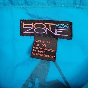 Vtg 1990s Hot Zone florescent green and blue neon quarter zip pullover windbreaker jacket. Several fsint spots shown in photos. Large front pocket. Nylon. Unisex.