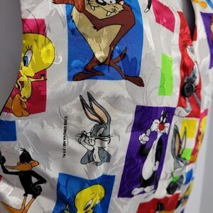 Vtg 1990s Warners Bros Looney Tunes multi character tie back button up vest. Tag says 1994. Characters include Taz, Tweety, Sylvester and Daffy. Would be great to wear to a festival! Polyester. Size S/M.