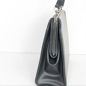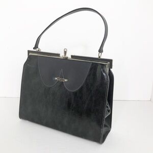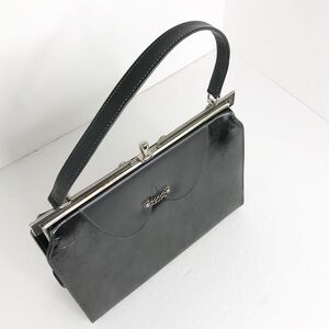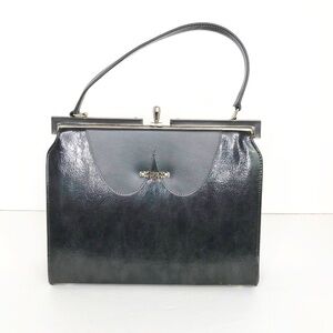 Vintage A Naturalizer gray patent handbag with bottom feet kiss snap closure one zipper compartment on the inside very clean lining good condition gently preowned just a white Mark as shown in one image and a little tarnish on the middle as shown in one image.
