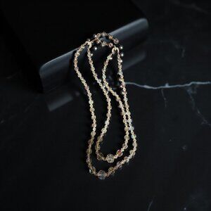 VINTAGE AB CRYSTAL 2 STRAND NECKLACE 17 IN & 18 IN PLUS EXTENSION CHAIN W HOOK