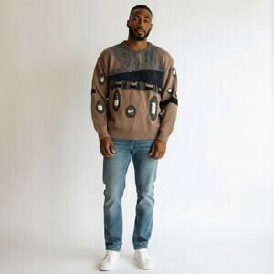VINTAGE ABSTRACT PATTERN KNITTED PULLOVER SWEATER COOGIE STYLE A.DINER MEN SZ XL