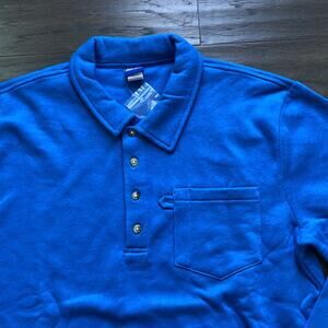 VINTAGE ACTIVE JOE Henley Sweatshirt Mens Sz Large Blue Midweight Collared