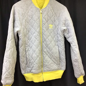 VINTAGE ADIDAS YELLOW/GRAY BOMBER REVERSABLE QUILTED JACKET SIZE M