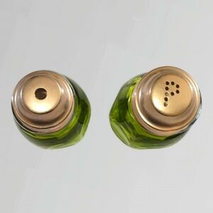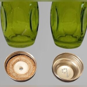VINTAGE AIRKO MID CENTURY AVOCADO GREEN THUMBPRINT GLASS SALT & PEPPER SHAKERS