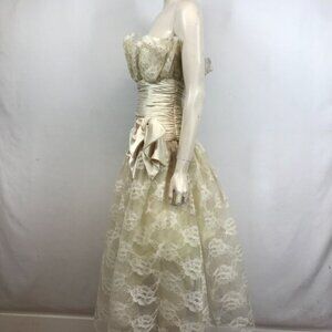VINTAGE A.J.BARI - WOMEN 8 - IVORY LACE STRAPLESS LARGE BOW FORMAL DRESS