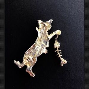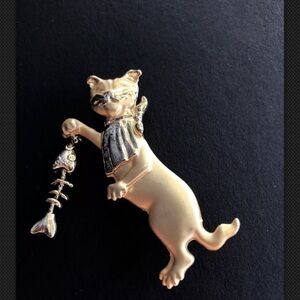 VINTAGE A.J.C. Brooch Goldtone Cat Kitten Fishbone
