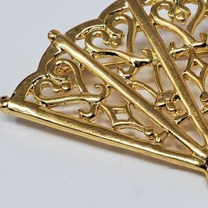 VINTAGE AK ANNE KLEIN GOLD TONE OPEN FAN BROOCH PIN OPEN SCROLLWORK 1980S