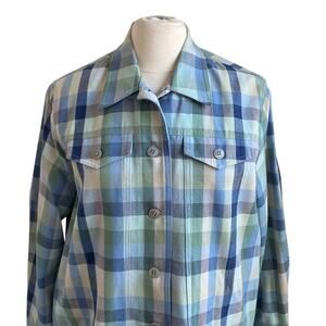 VINTAGE ALFRED DUNNER Jacket Womens Size 16P Green Plaid Grandma Shacket