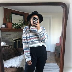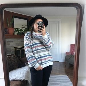 VINTAGE ALFRED DUNNER | Women's 2X Blue Pink Nordic Cottagecore Collared Sweater
