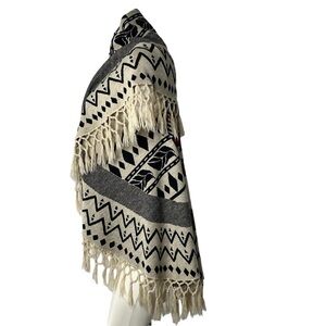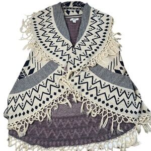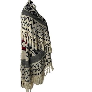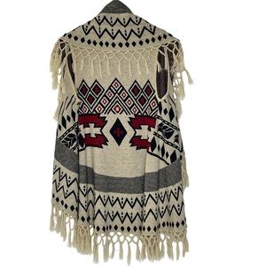 VINTAGE AMERICA Aztec Fringed Cardigan Shawl Poncho Size Small/Medium