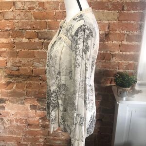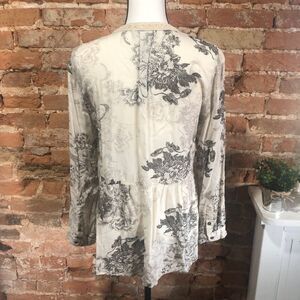 VINTAGE AMERICA BOHO TUNIC STYLE LONG SLEEVE TOP WOMANS SMALL FLORAL BOTANICAL
