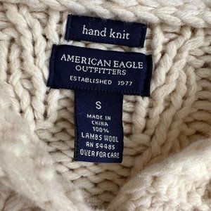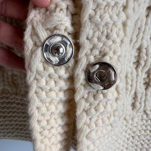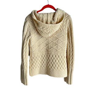 VINTAGE AMERICAN EAGLE Hand Knit Lambswool Ladies Fisherman Hooded Cardigan, S
