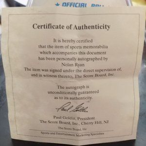 VINTAGE AMERICAN LEAGUE BASEBALL AUTOGRAPHED BY NOLAN RYAN W/ COA