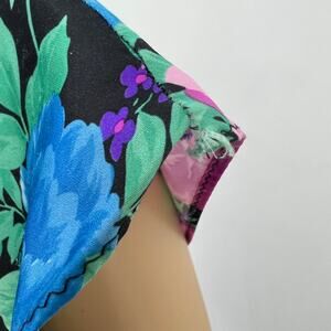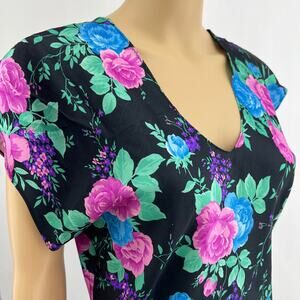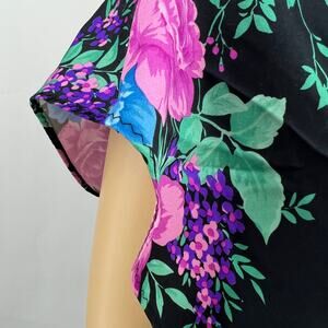 VINTAGE AMERICAN Texsheen SMALL 1960's Black Floral Sleep Mini Dress Night Gown
