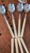VINTAGE ANACAPA A* JAPAN SET OF 8 SPOONS STAINLESS TAN MELAMINE HANDLES MCM