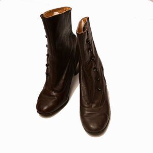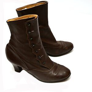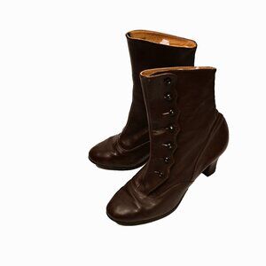 VINTAGE ANELLO & DAVIDE -LONDON Victorian Leather Boots Size UK 5. Brown with Button Up Closure