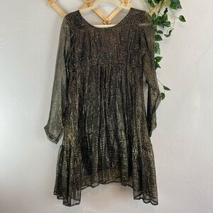 VINTAGE | ANN SIMONE | Metallic Black & Gold Long Sleeve Dress
