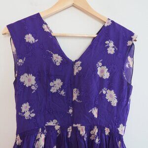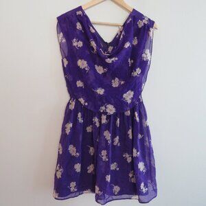 VINTAGE ANNA SUI 100% Silk Purple Ditsy Floral Draped Dress - Size US 2