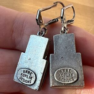 BEAUTIFUL VINTAGE DESIGNER ANNE KOPLIK DROP DANGLE EARRINGS , IN SILVER TONE METAL, WITH VERY SECURE LEVER-BACK LOCKS.