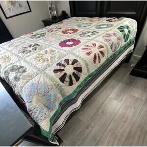 VINTAGE ANTIQUE Quilt HANDMADE DRESDEN PLATE PATTERN Queen / Full Flour Sack